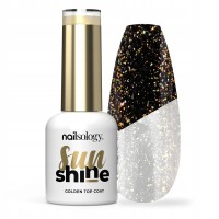Dodaj paznokciom wyjątkowego złotego blasku dzięki luksusowemu topowi brokatowemu Sun Shine Gold. Drobinki złota równomiernie rozkładają się na płytce, tworząc oszałamiający efekt glamour.