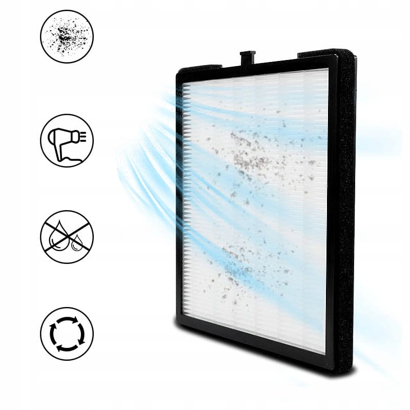 ⚠️ Nie należy myć go wodą ani zwilżać, ponieważ traci wtedy swoje właściwości filtracyjne.