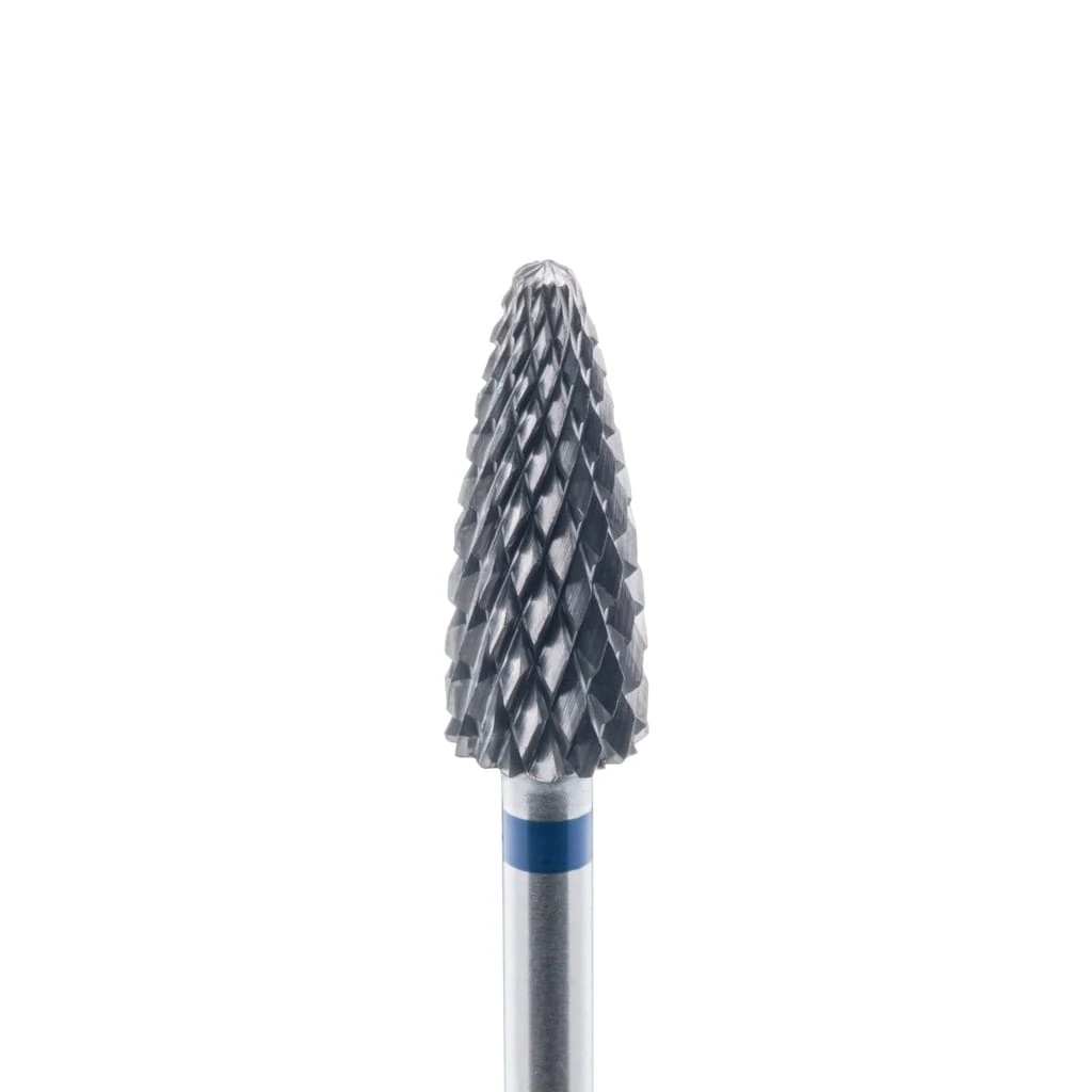 Frez z węglika spiekanego w kształcie stożka o średnio mocnych nacięciach krzyżowych.