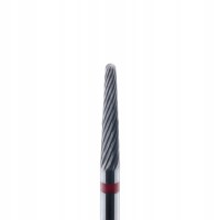 Profesjonalny frez z węglika spiekanego Aba Group F32 (stożek, delikatny, czerwony) przeznaczony do precyzyjnego usuwania resztek masy hybrydowej, żelu i akrylu, także w trudno dostępnych miejscach. Spiralne ułożenie ząbków odprowadza ciepło, co zapobiega nagrzewaniu i pieczeniu płytki paznokcia.