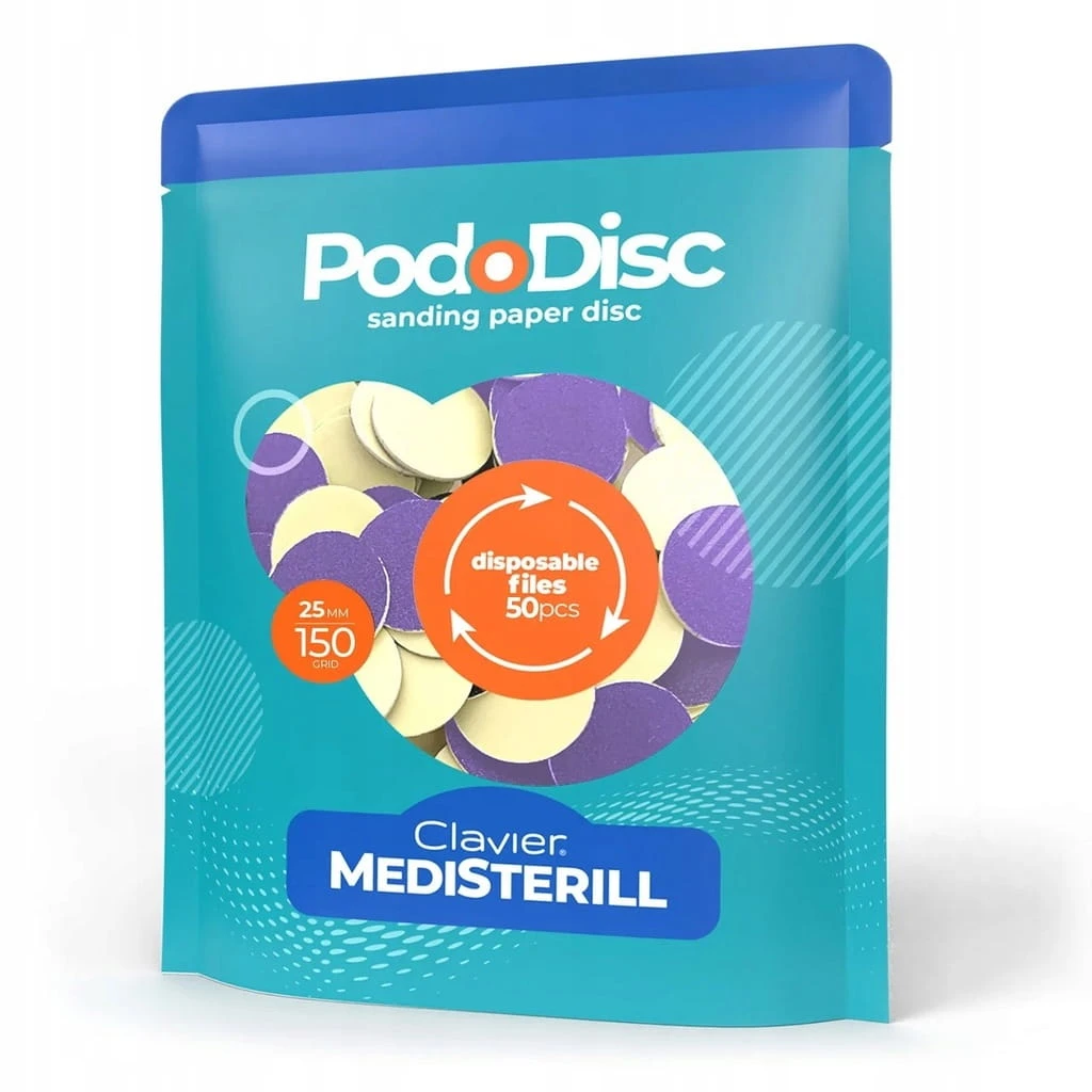 Profesjonalne nakładki ścierne Pododisc CLAVIER o ziarnistości 150 grit to trwałe, samoprzylepne elementy wymienne, które pewnie przylegają do metalowego nośnika. Dzięki odporności na wilgoć można stosować je z wodą lub preparatami zmiękczającymi naskórek, bez ryzyka odklejenia.