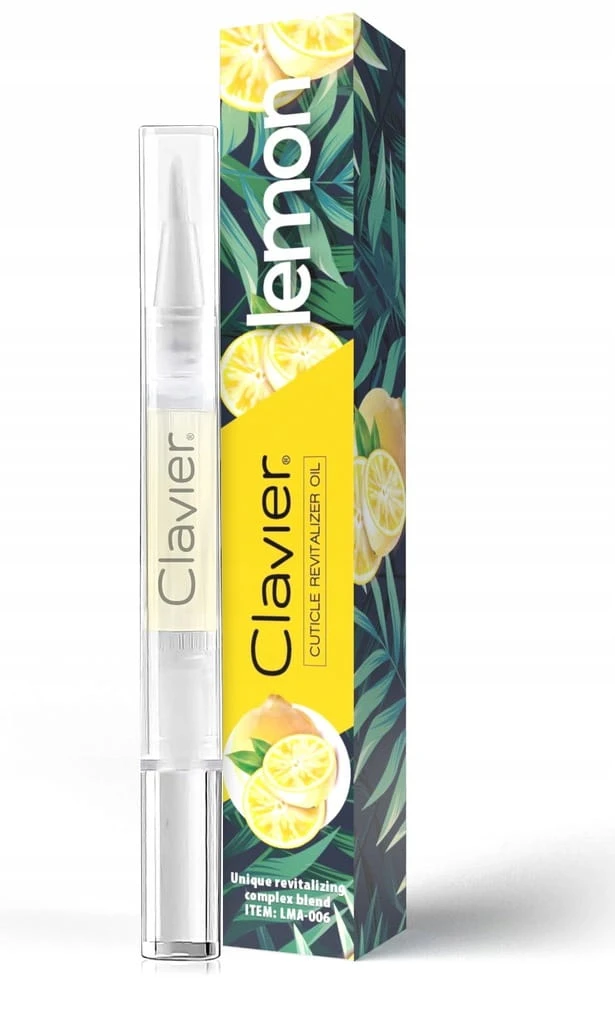 Clavier Lemon to profesjonalna oliwka/odżywka do skórek i paznokci, która wzmacnia, regeneruje i nawilża płytkę paznokcia oraz otaczającą ją skórkę. Produkt został zamknięty w wygodnym pisaku z pędzelkiem, który umożliwia precyzyjną i równomierną aplikację. Specjalnie zaprojektowany wkład zapobiega rozlaniu, dzięki czemu zabieg pielęgnacyjny jest prosty i komfortowy.