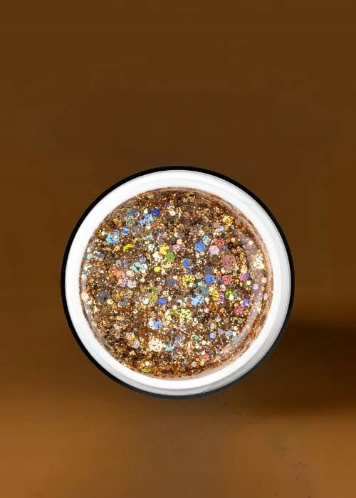 Żel do zdobień Golden Aurora z kolekcji Princess Art Gel łączy elegancję, blask i funkcjonalność. Zawiera brokatowe heksagony w odcieniach złota i holo, zatopione w półtransparentnej bazie. Formuła samopoziomująca i średniogęsta umożliwia precyzyjne modelowanie detali i tworzenie efektownych, niepowtarzalnych stylizacji.