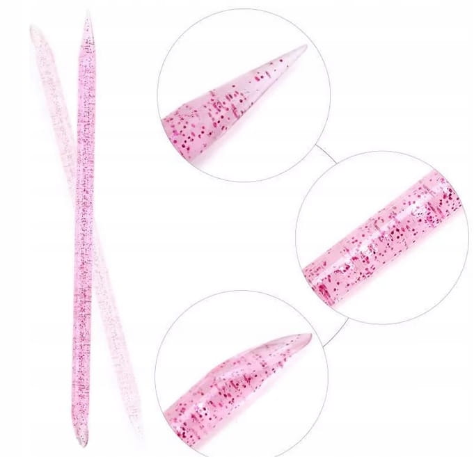 Precyzyjne zakończenie pozwala delikatnie odsuwać skórki bez ryzyka uszkodzenia płytki paznokcia, a materiał jest łatwy w dezynfekcji i odporny na działanie preparatów czyszczących. Elegancki różowy brokatowy design dodaje stylu i wyróżnia narzędzie wśród klasycznych akcesoriów.