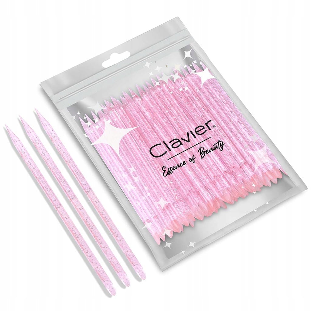 Clavier Patyczki do skórek plastikowe 50 szt – różowe brokatowe