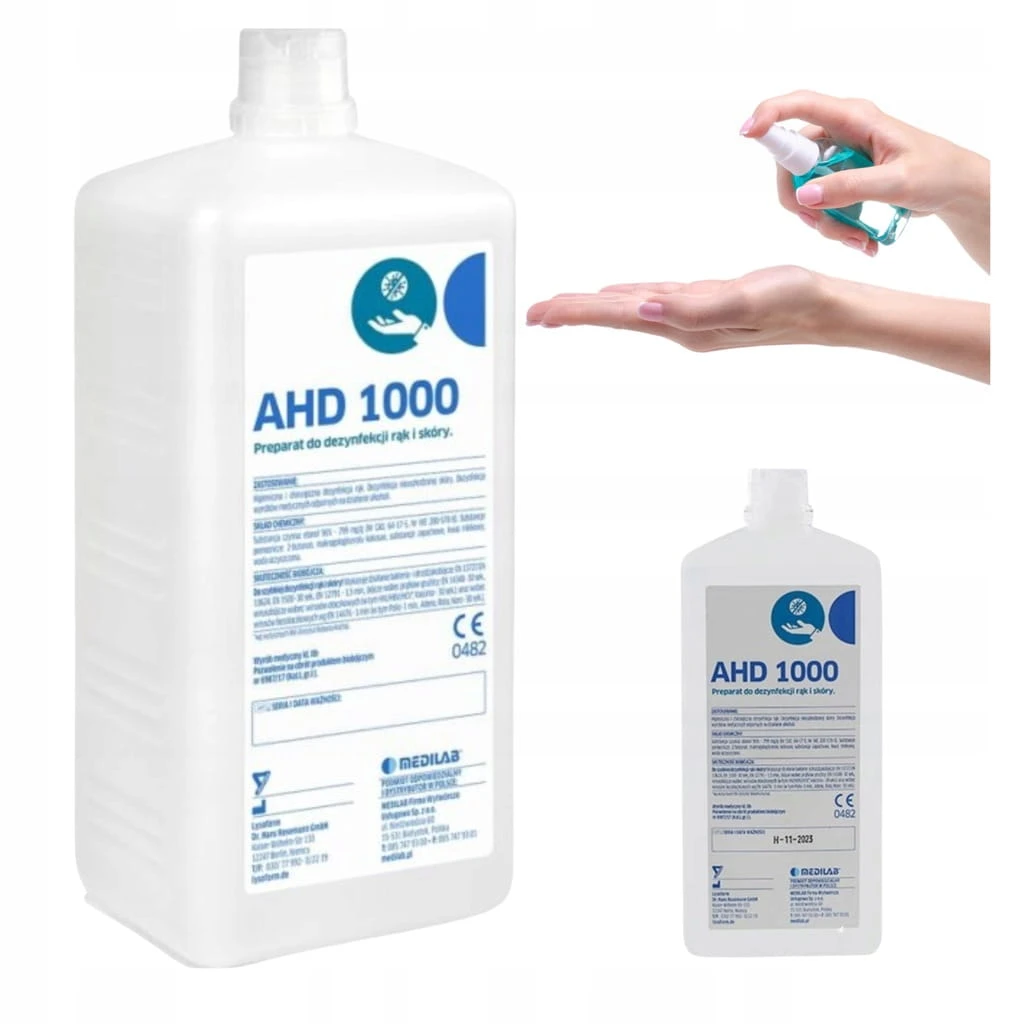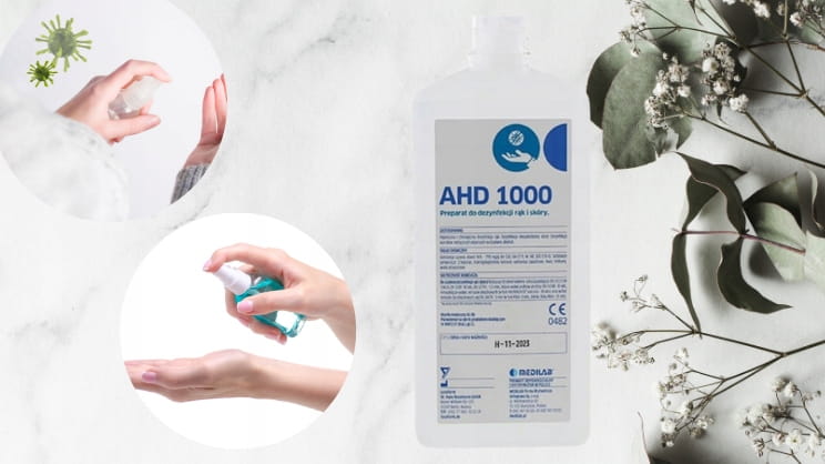 AHD 1000 to profesjonalny, alkoholowy preparat do dezynfekcji rąk, skóry oraz małych powierzchni wyrobów medycznych, przeznaczony do użytku w gabinetach kosmetycznych, medycznych, fryzjerskich i w warunkach domowych.