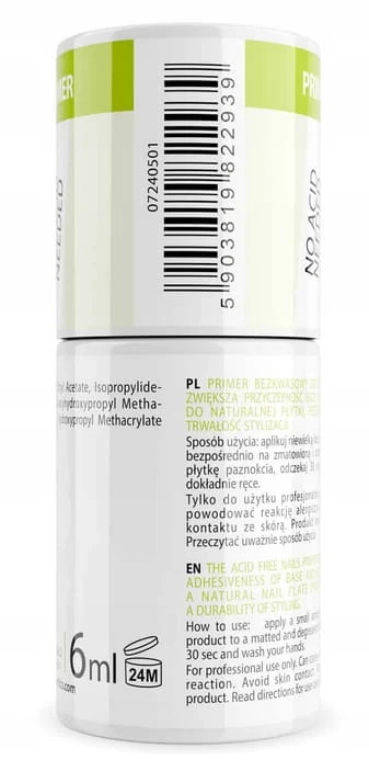 Przeznaczenie: profesjonalny primer bezkwasowy do lakierów hybrydowych, żeli i akryli