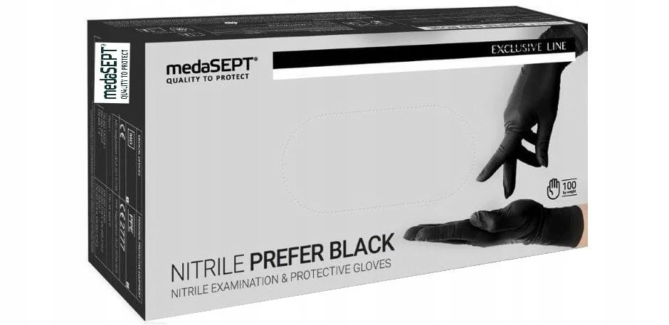 Medasept Nitrile Prefer Black to rękawice jednorazowe klasy premium, stworzone z myślą o maksymalnej ochronie, wygodzie użytkowania i estetycznym wyglądzie. Wyróżniają się unikalnym, całkowicie kryjącym czarnym kolorem, który nie tylko dodaje profesjonalizmu, ale także czyni je jednymi z najbardziej rozpoznawalnych i pożądanych rękawic na rynku.