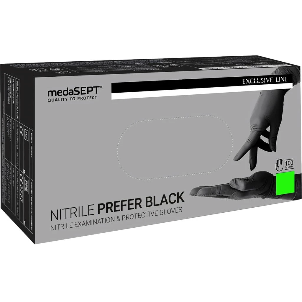 Rękawiczki jednorazowe ochronne czarne MedaSEPT – rozmiar S, 100 szt.