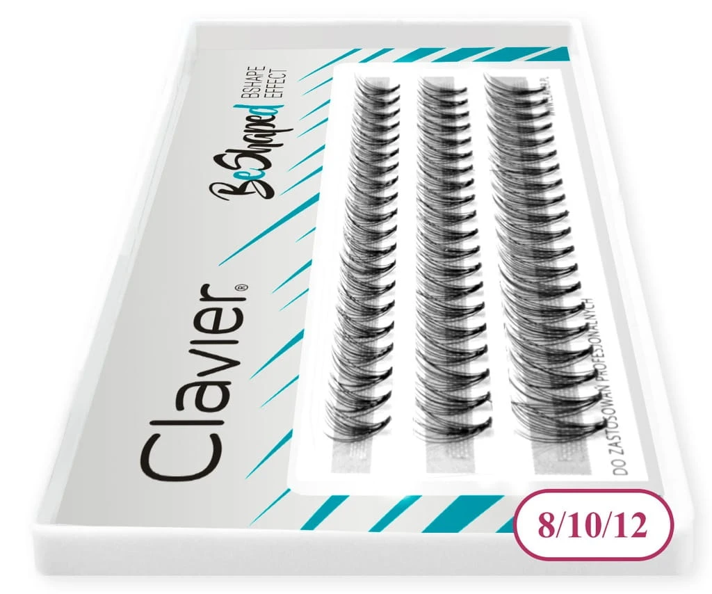 Clavier Be Shaped to kępki rzęs o delikatniejszym skręcie typu B, stworzone z myślą o kobietach, które chcą uzyskać naturalny, subtelnie podkręcony look. Jedno opakowanie zawiera trzy długości kępek – 8mm, 10mm i 12mm – idealne do dopasowania stylizacji do kształtu oka.