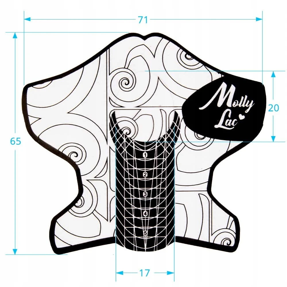 Dzięki mocnemu klejowi formy utrzymują kształt przez cały proces stylizacji, umożliwiając precyzyjne i trwałe przedłużenie paznokci metodą żelową, akrylową lub akrylożelową.