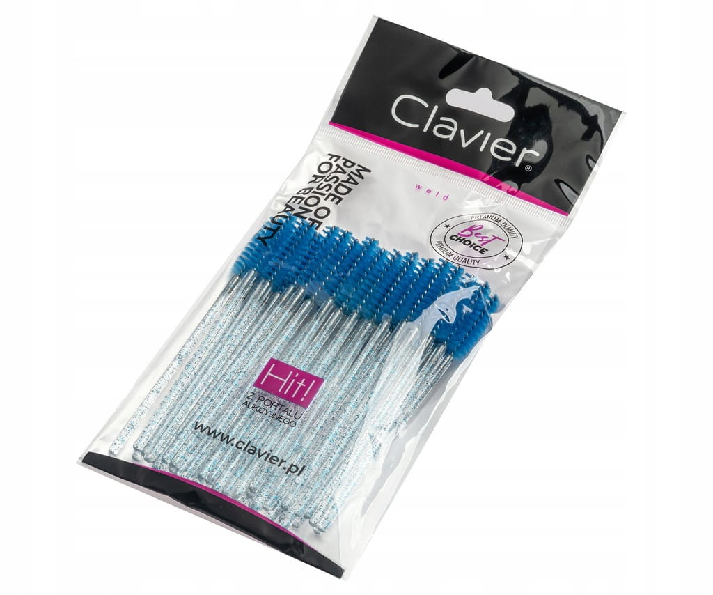 Szczoteczki spiralki do rzęs Clavier brokatowe 50 sztuk niebieskie