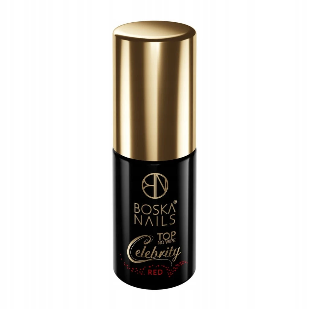 Top Celebrity Red to produkt No Wipe, który nie wymaga przemywania po utwardzeniu. Może być stosowany z dowolnym kolorem lakieru hybrydowego marki Boska Nails, zapewniając trwałość stylizacji i efektowny, błyszczący wygląd paznokci. Pojemność: 6 ml.