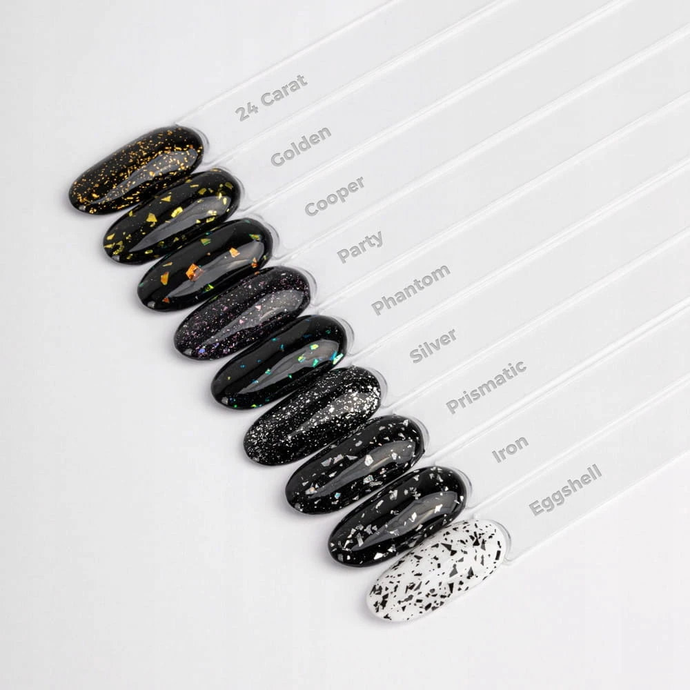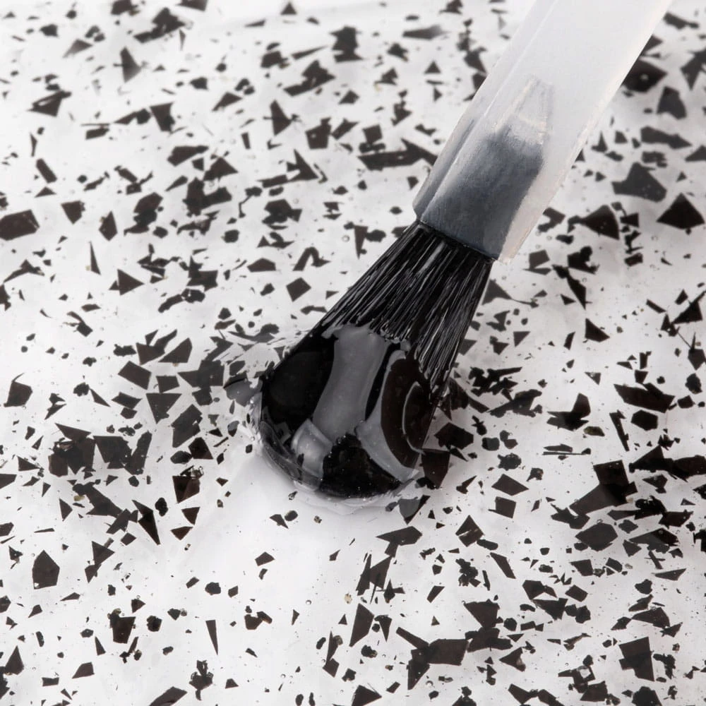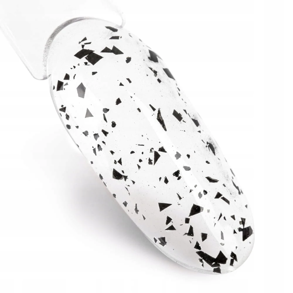 Top Drop Flakes Eggshell to top hybrydowy bez przemywania, który nadaje stylizacji unikalny efekt „skorupki jajka”. Zanurzone w przezroczystej bazie czarne, nieregularne płatki tworzą oryginalny, dekoracyjny wzór, idealny do wyjątkowych i tematycznych manicure, np. wielkanocnych.