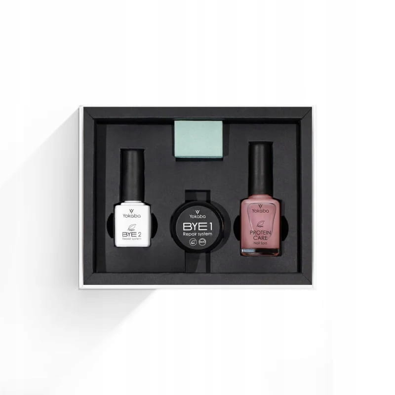Profesjonalny zestaw marki Yokaba stworzony do intensywnej regeneracji oraz odbudowy zniszczonej, łamliwej płytki paznokcia. Komplet zawiera wszystkie produkty potrzebne do wykonania 3-stopniowego zabiegu wzmacniającego, opracowanego przez ekspertów Yokaba jako alternatywa dla manicure japońskiego. Po zakończeniu kuracji paznokcie można normalnie stylizować.
